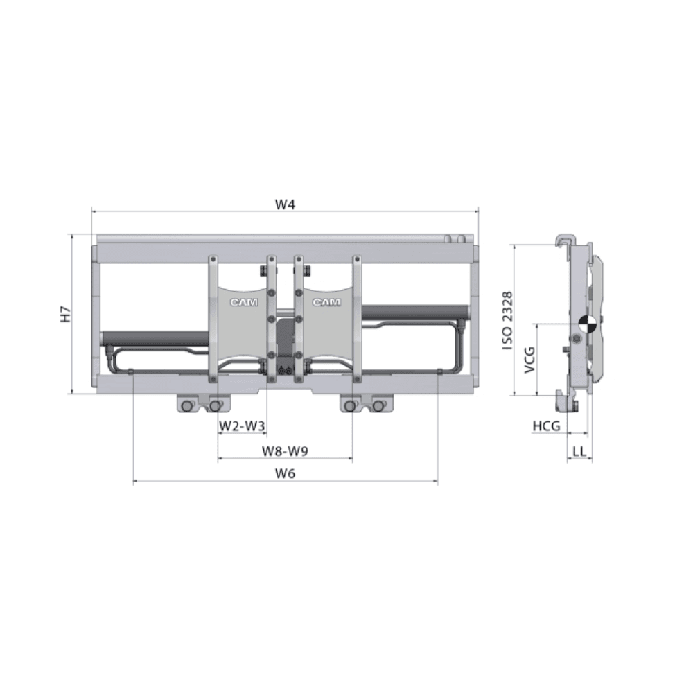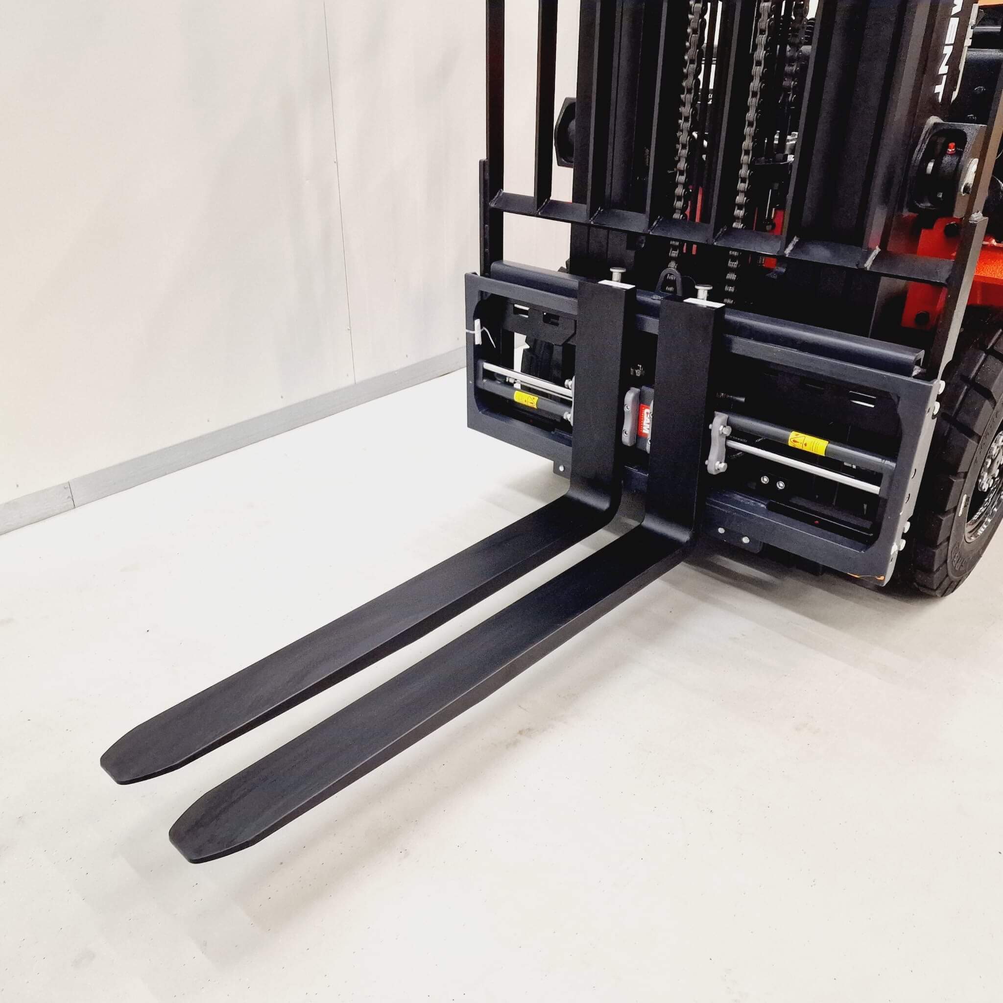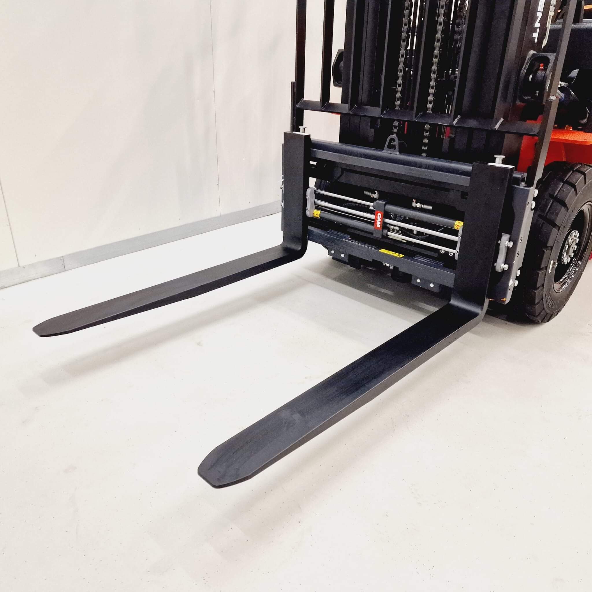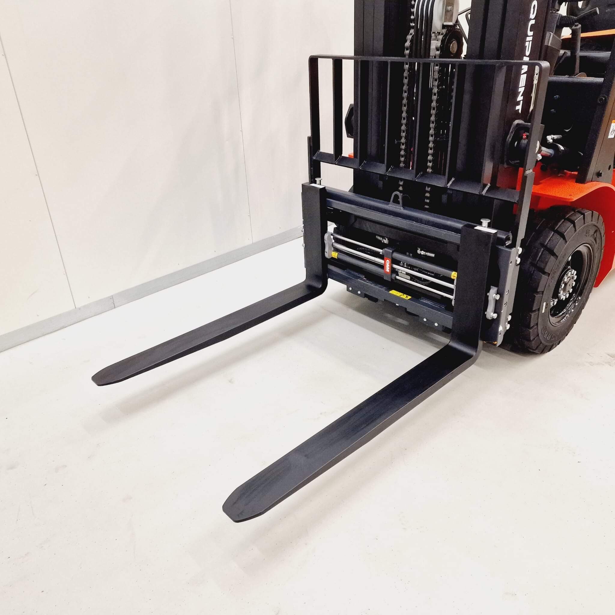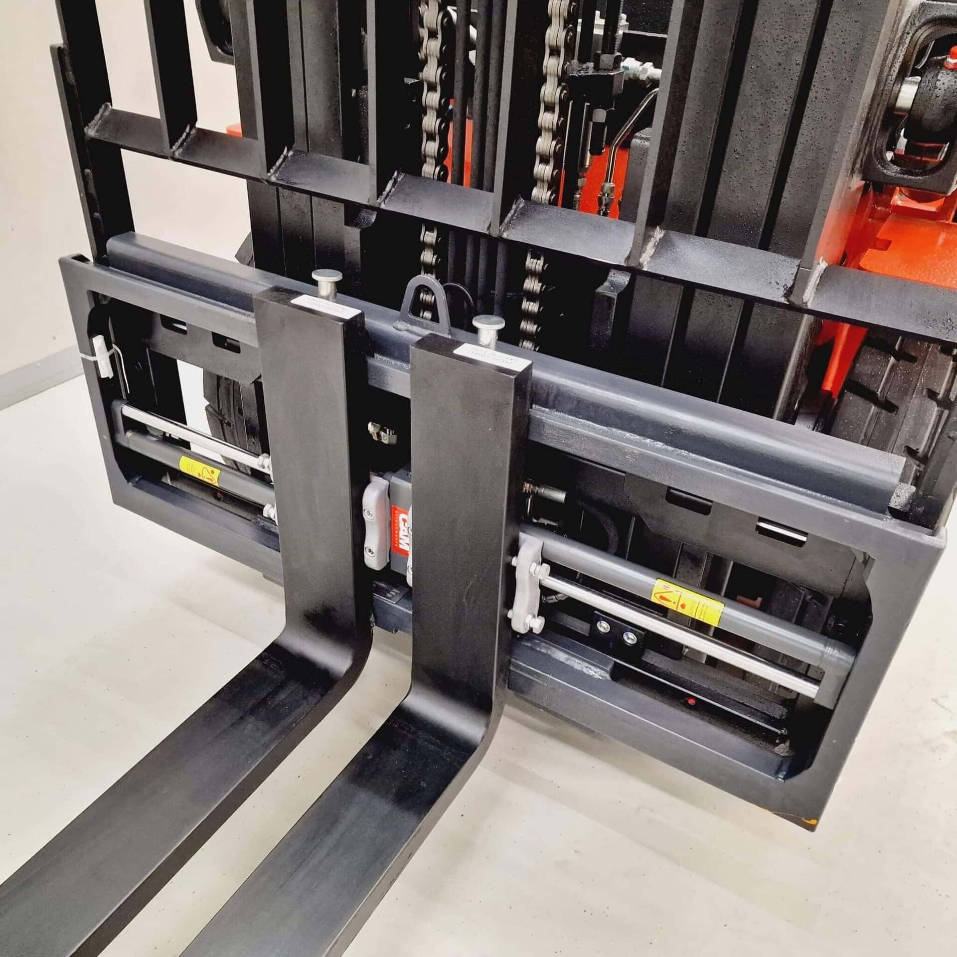 De PH-vorkversteller met FEM-vorkendragers zonder zijverschuiver is een robuuste en praktische uitbreiding voor heftrucks die flexibel willen omgaan met verschillende lastbreedtes. Deze vorkversteller wordt geleverd zonder vorken, waardoor bestaande standaard heftruckvorken eenvoudig over het frame gemonteerd kunnen worden.